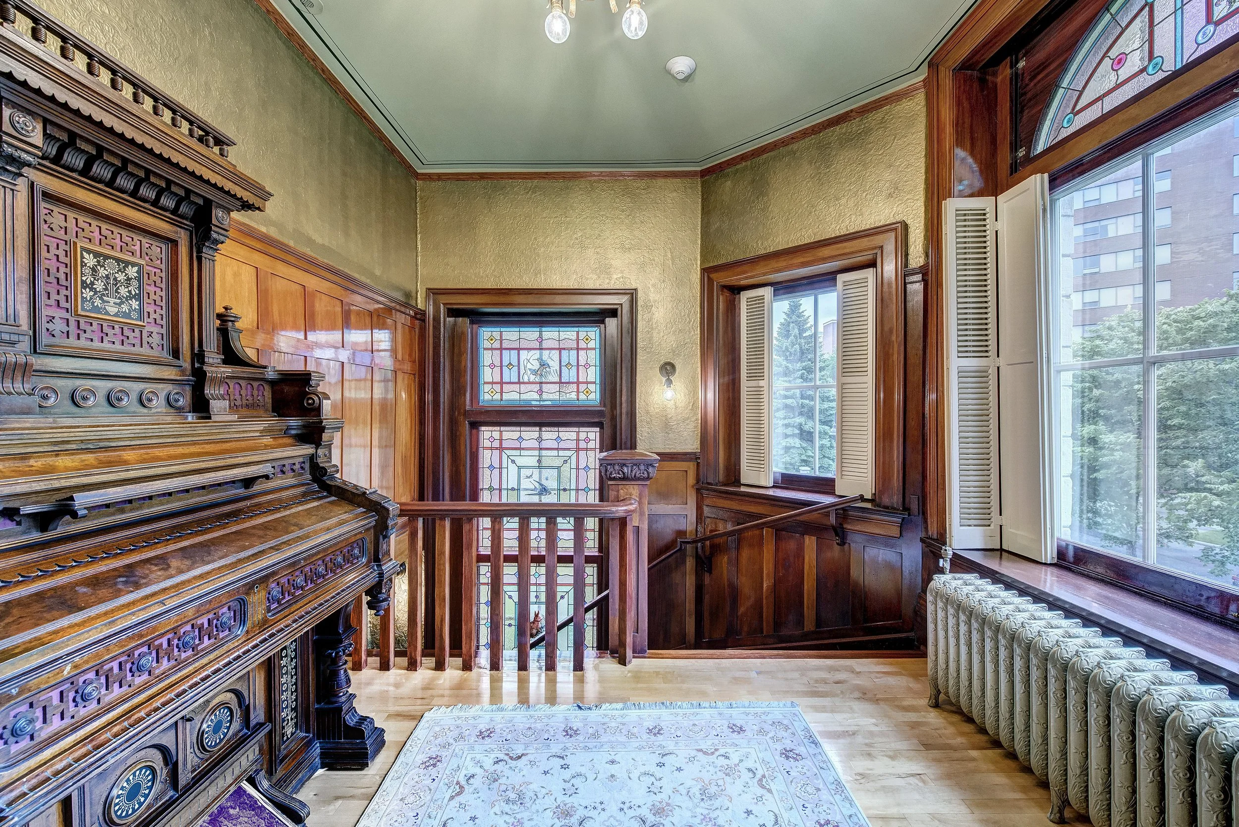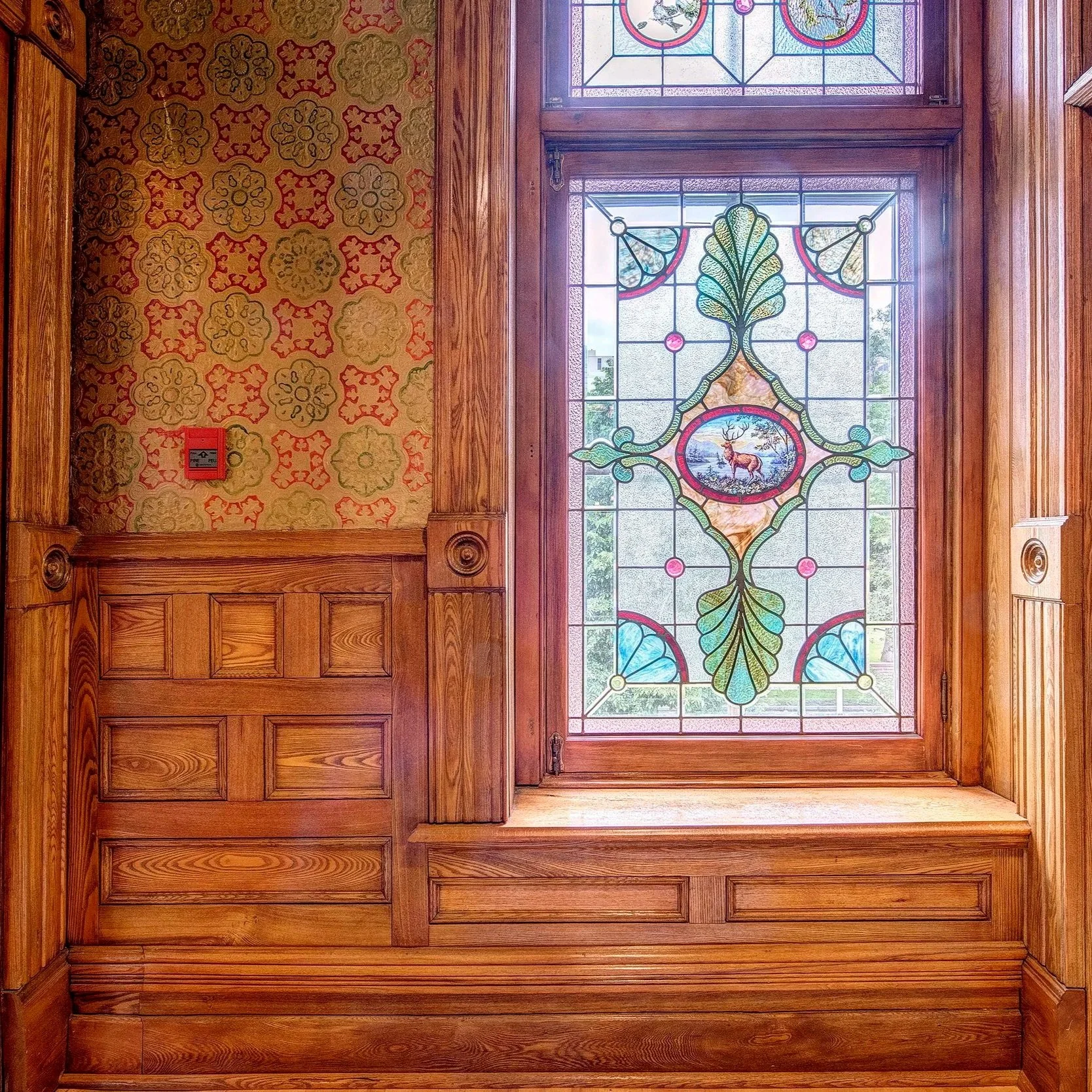View of Stained Glass on North Wall of Second Floor Staircase